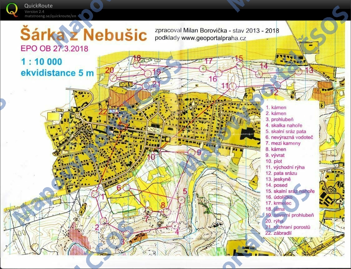 Jen JPG. Mapováno 2011-2018. Odvozenina z mapy Divoká Šárka, Id 10323. |