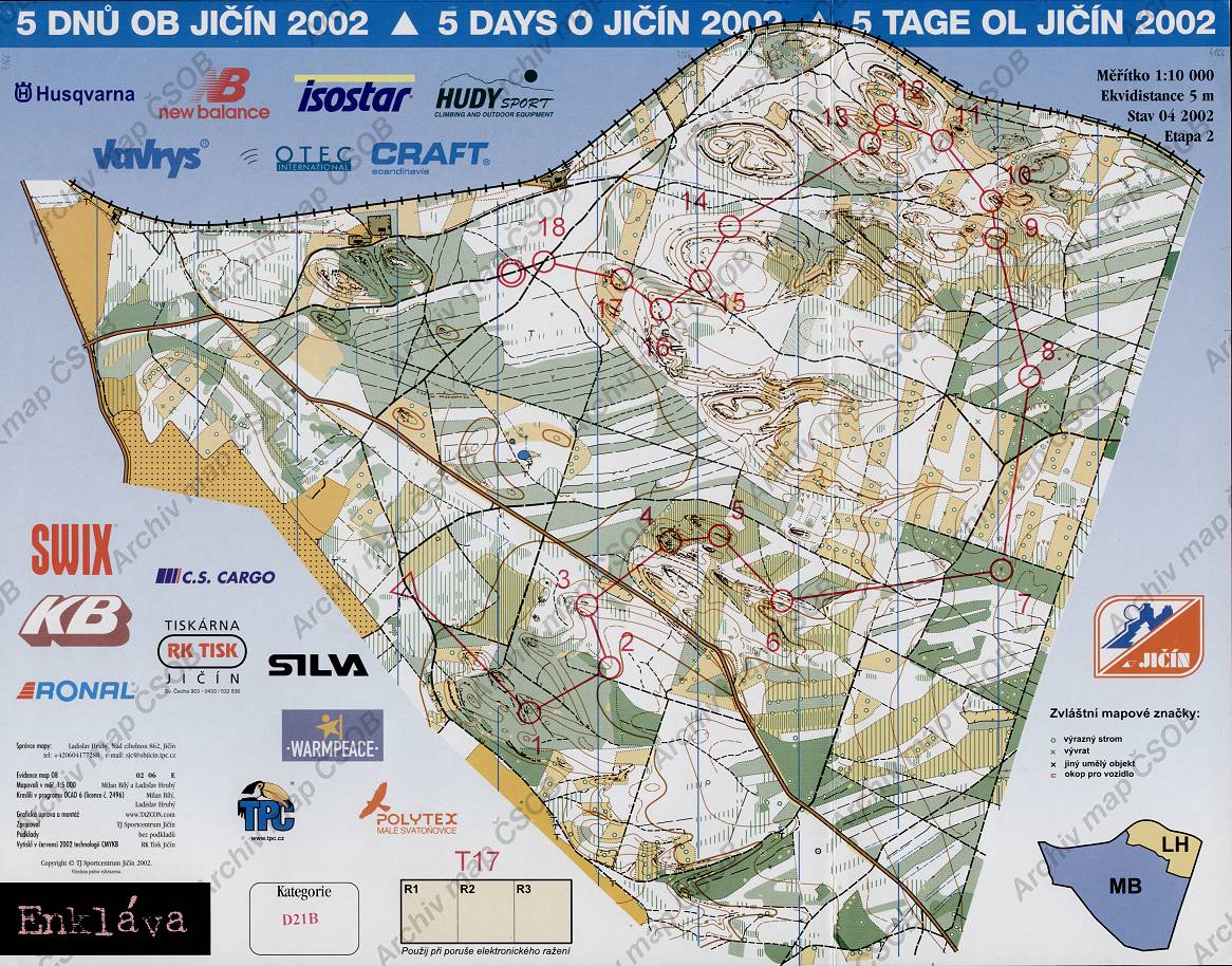 v modrém pruhu 5 dnů OB Jičín 2002, prostor na jihu větší, stav uveden 04 2002 |
